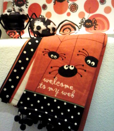 What's it include? A collection of spooky spiders including 4 round spider pillars, 1 spider goodie tray, 2 Halloween Spider themed tea towels, 1-set/12 Hallow Tapers in metal basket, and to top it all off a framed Halloween themed, Original, hand signed ACEO trading Card Pop Art Mini.